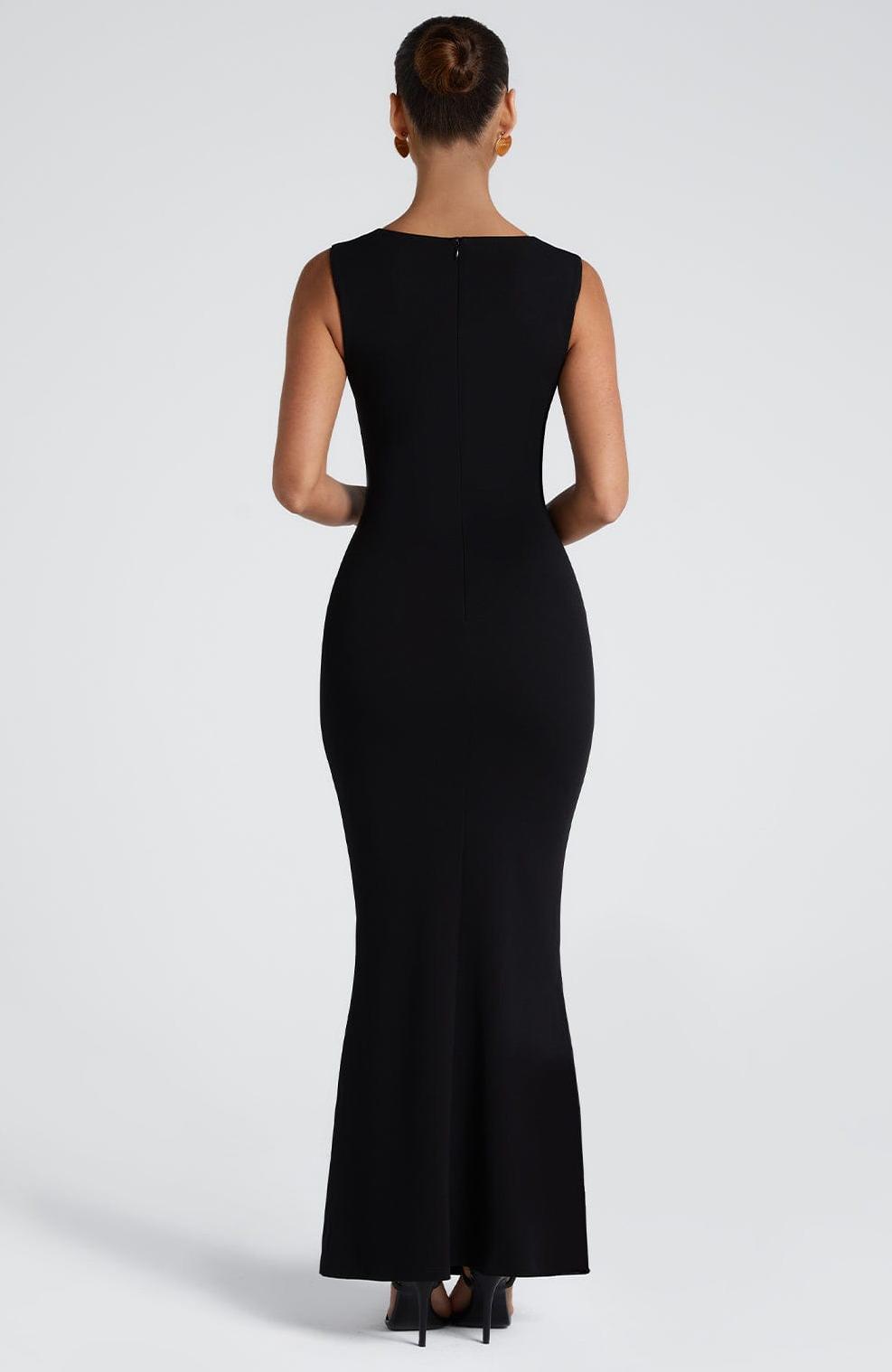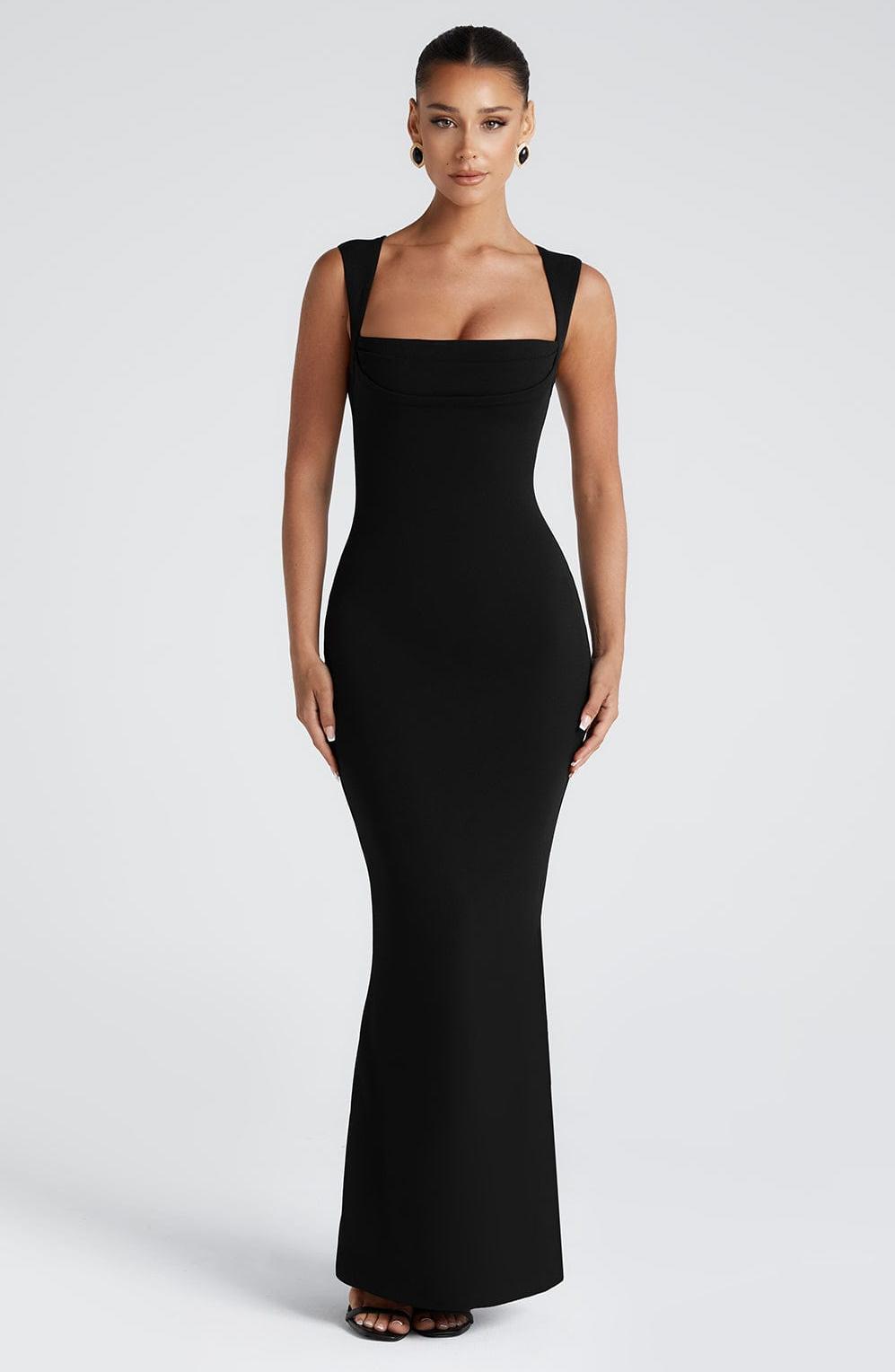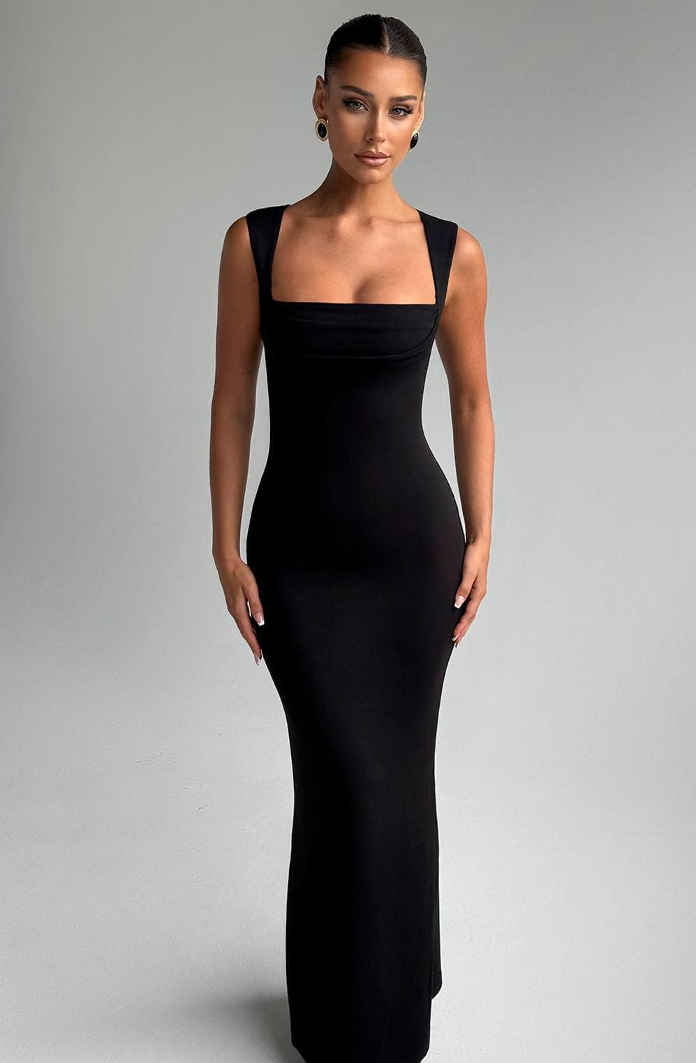 Square collar women's waist cinching slimming solid color jumpsuit long skirt